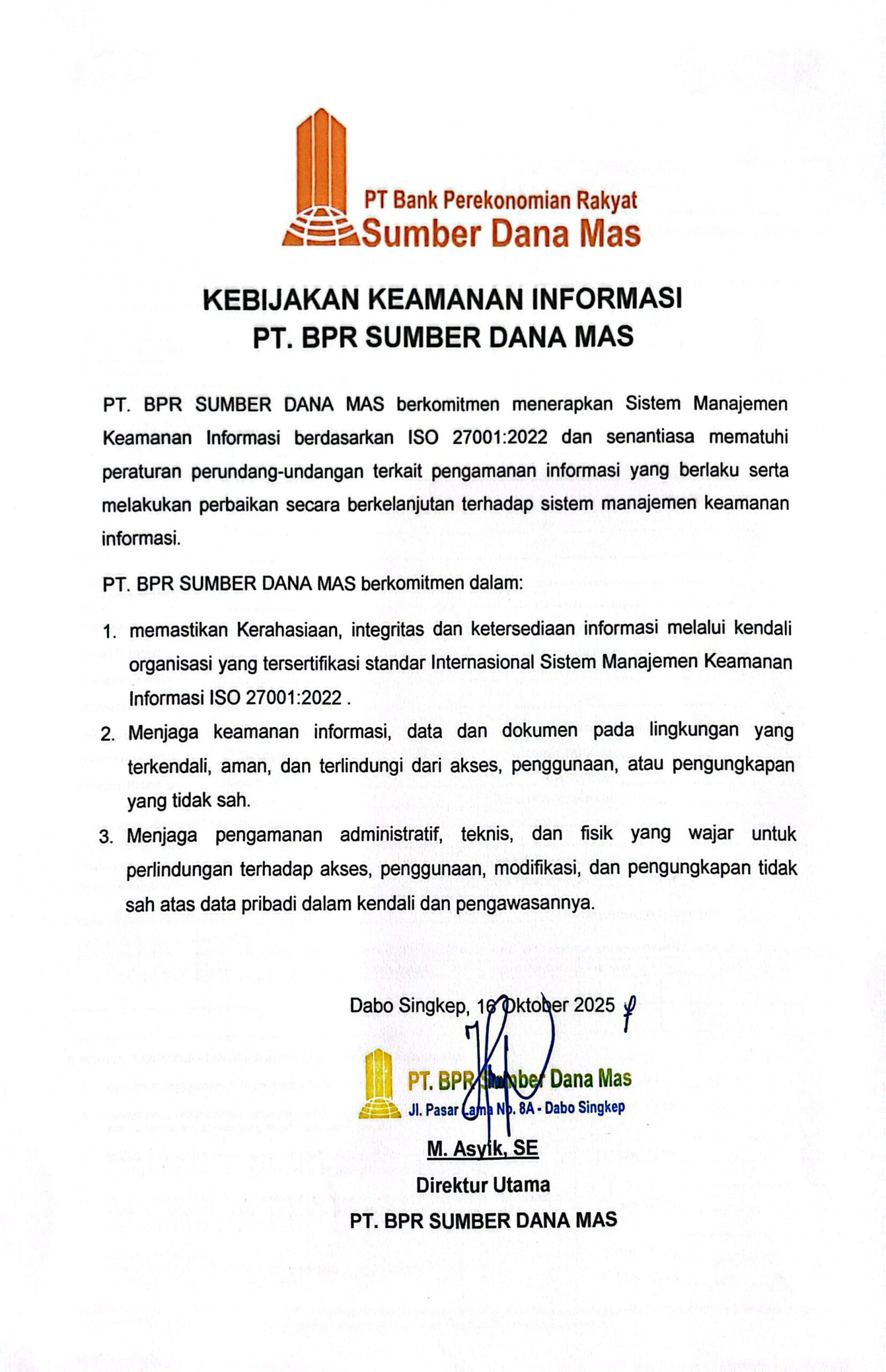 PT BPR SUMBER DANA MAS Mendapatkan Kategori TOP 100 BPR Beraset RP. 35M sampai dengan dibawah RP. 100 M