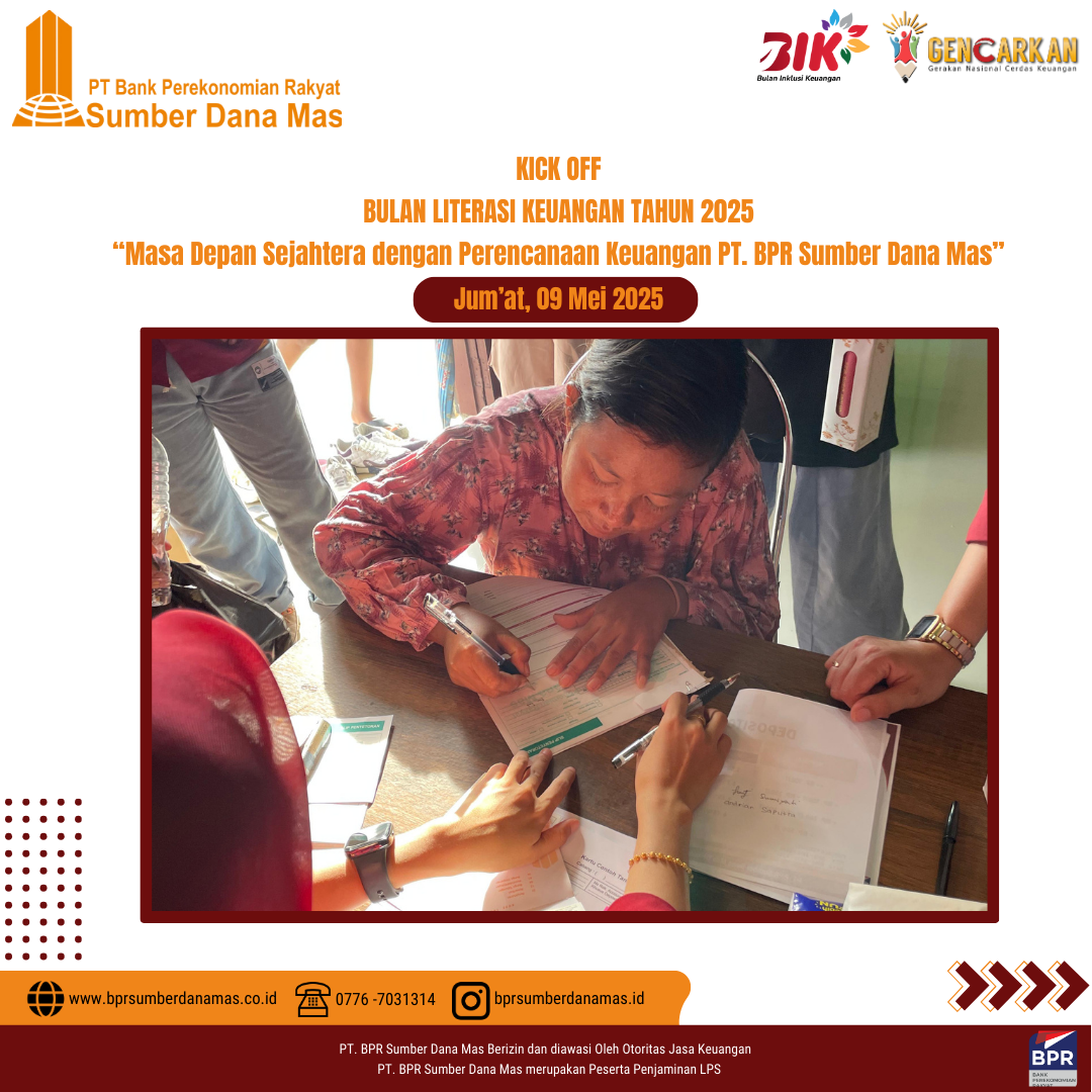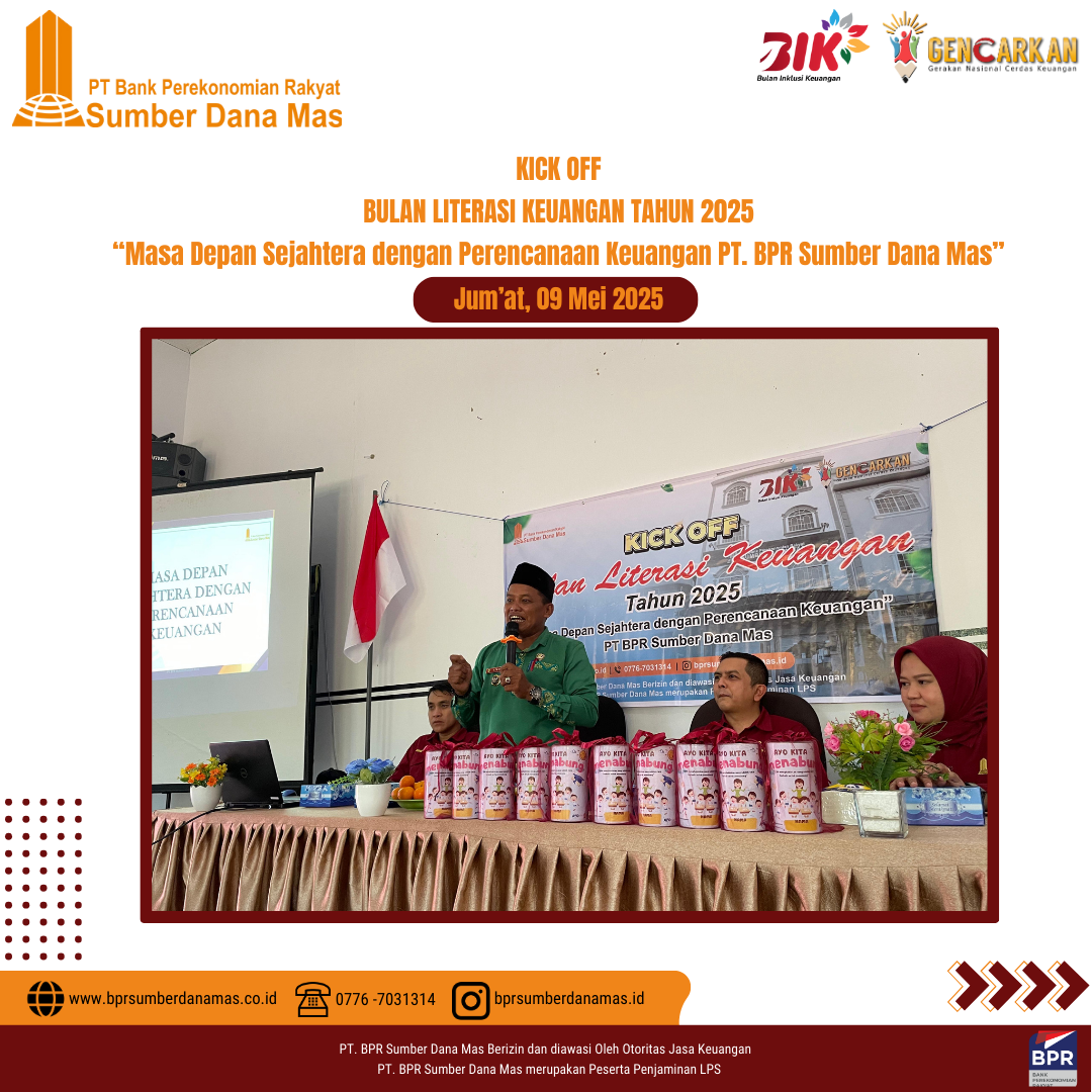 BeritaBulan Literasi Keuangan 2025May 27, 2025May 27, 2025Kick Off , Bulan Literasi Keuangan 2025, Jumat 09 Mei 2025 “Masa depan Sejahtera dengan perencanaan keuangan PT. BPR Sumber Dana Mas”
