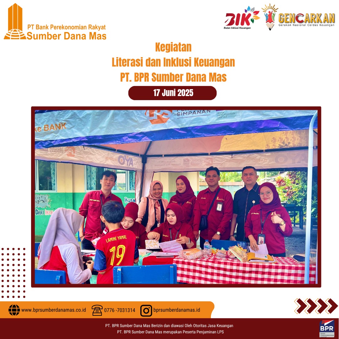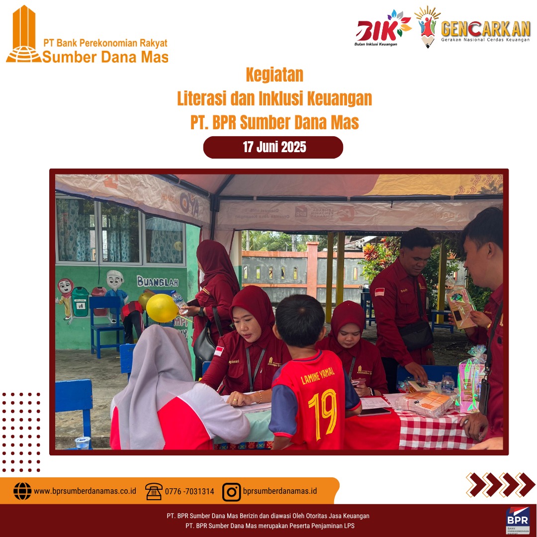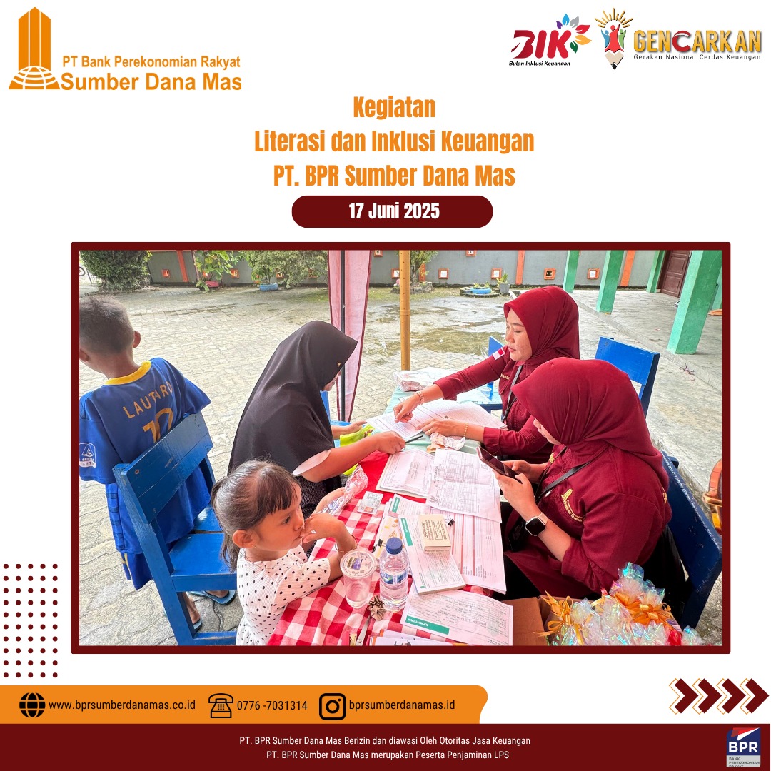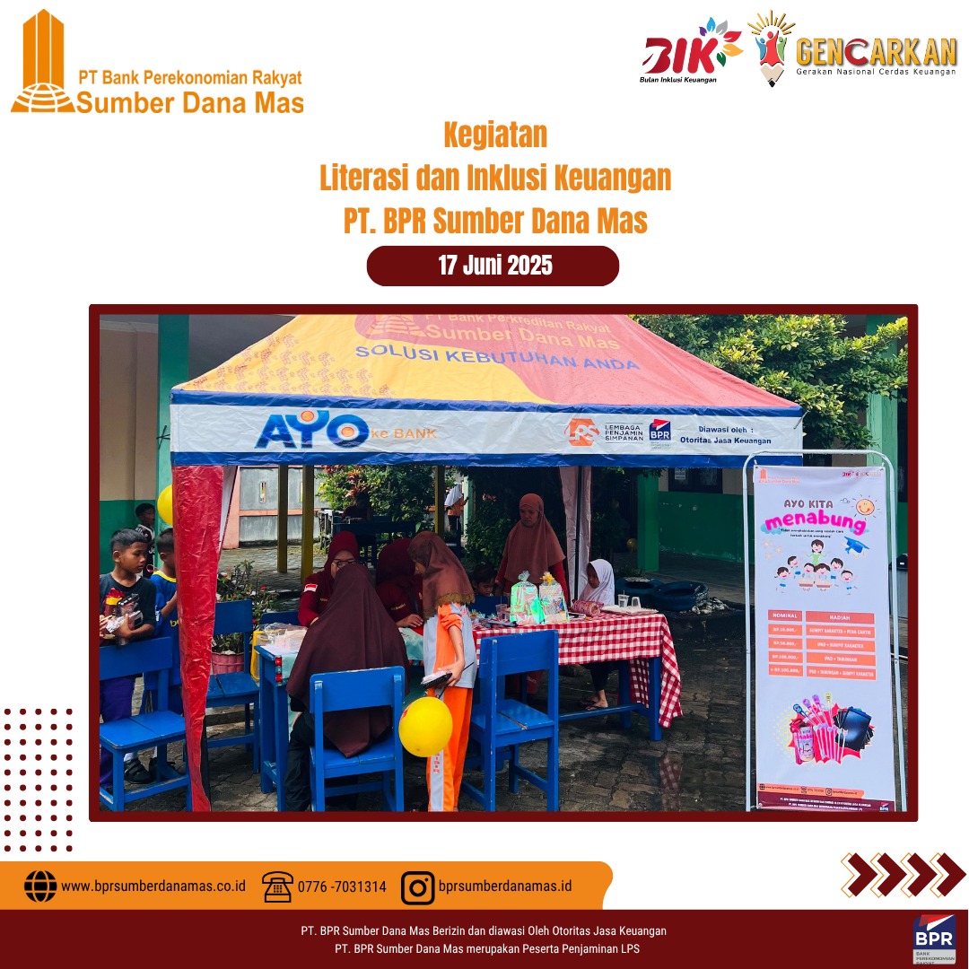 PT BPR Sumber Dana Mas hadir di SDN 003 Singkep Pesisir dalam kegiatan edukasi dan inklusi keuangan untuk siswa-siswi sekolah dasar. Disini anak-anak diajak belajar pentingnya menabung sejak dini dan mengelola uang jajan dengan bijak serta menumbuhkan semangat kemandirian finansial sejak usia dini.